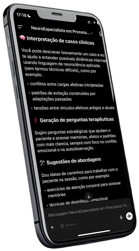 Com o Neuroespecialista, você nunca mais estará sozinha dentro do consultório. Você vai ter direção, repertório e autoridade — em qualquer atendimento.